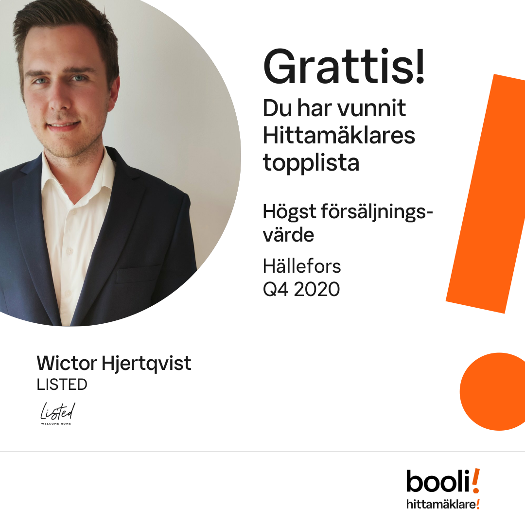 Statistik för publicerade bostäder, försäljningar och omdömen baseras på data från Booli och Hittamäklare. Statistiken för försäljningar avser inrapporterade och verifierade slutpriser från mäklare eller av Booli inhämtade och verifierade slutpriser. Statistiken för publicerade bostäder baseras på information som publicerats på Booli.se. Statistik för omdömen och rekommendationer baseras på omdömen från säljare som lämnats via Booli och Hittamäklare.