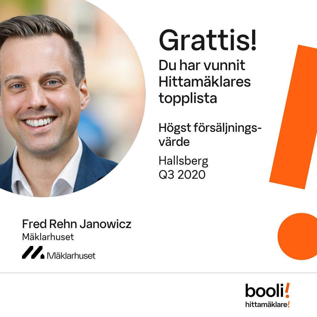 Statistik för publicerade bostäder, försäljningar och omdömen baseras på data från Booli och Hittamäklare. Statistiken för försäljningar avser inrapporterade och verifierade slutpriser från mäklare eller av Booli inhämtade och verifierade slutpriser. Statistiken för publicerade bostäder baseras på information som publicerats på Booli.se. Statistik för omdömen och rekommendationer baseras på omdömen från säljare som lämnats via Booli och Hittamäklare.