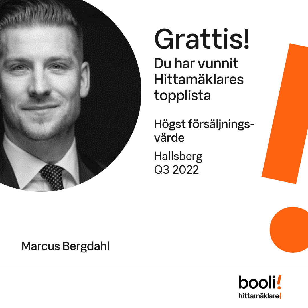 Statistik för publicerade bostäder, försäljningar och omdömen baseras på data från Booli och Hittamäklare. Statistiken för försäljningar avser inrapporterade och verifierade slutpriser från mäklare eller av Booli inhämtade och verifierade slutpriser. Statistiken för publicerade bostäder baseras på information som publicerats på Booli.se. Statistik för omdömen och rekommendationer baseras på omdömen från säljare som lämnats via Booli och Hittamäklare.
