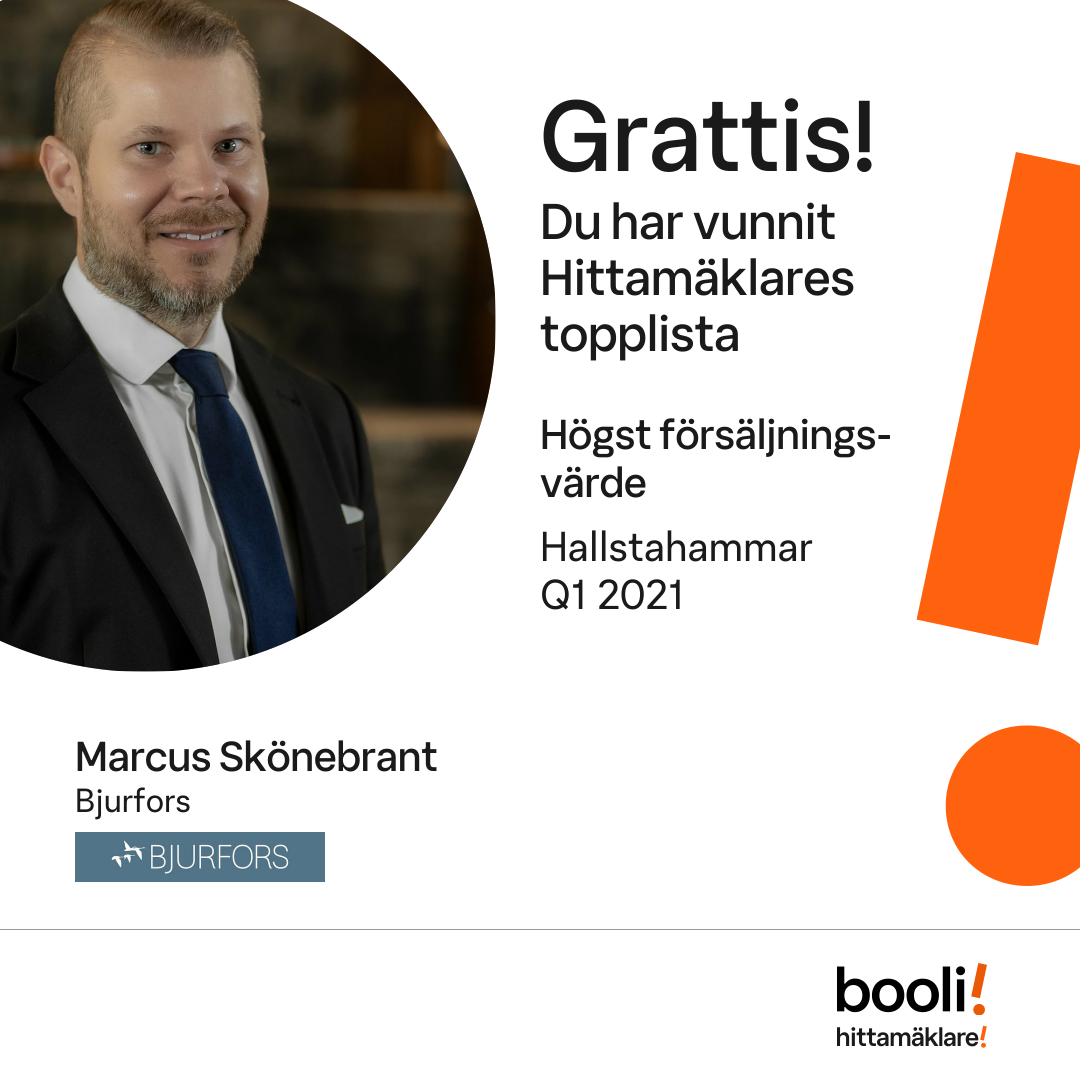 Statistik för publicerade bostäder, försäljningar och omdömen baseras på data från Booli och Hittamäklare. Statistiken för försäljningar avser inrapporterade och verifierade slutpriser från mäklare eller av Booli inhämtade och verifierade slutpriser. Statistiken för publicerade bostäder baseras på information som publicerats på Booli.se. Statistik för omdömen och rekommendationer baseras på omdömen från säljare som lämnats via Booli och Hittamäklare.