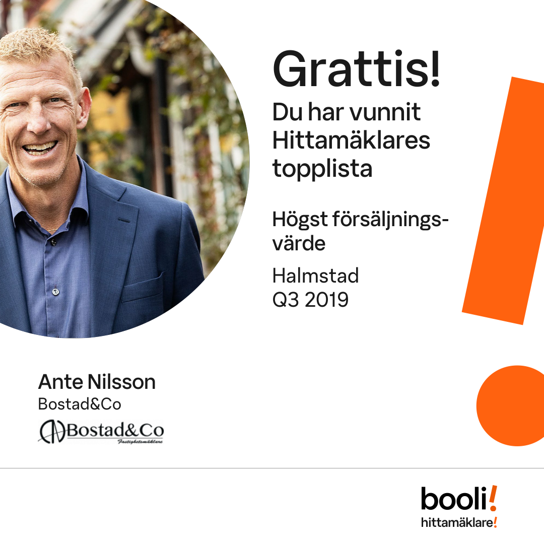 Statistik för publicerade bostäder, försäljningar och omdömen baseras på data från Booli och Hittamäklare. Statistiken för försäljningar avser inrapporterade och verifierade slutpriser från mäklare eller av Booli inhämtade och verifierade slutpriser. Statistiken för publicerade bostäder baseras på information som publicerats på Booli.se. Statistik för omdömen och rekommendationer baseras på omdömen från säljare som lämnats via Booli och Hittamäklare.
