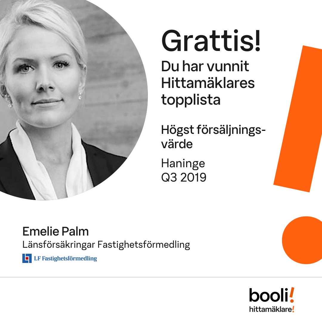 Statistik för publicerade bostäder, försäljningar och omdömen baseras på data från Booli och Hittamäklare. Statistiken för försäljningar avser inrapporterade och verifierade slutpriser från mäklare eller av Booli inhämtade och verifierade slutpriser. Statistiken för publicerade bostäder baseras på information som publicerats på Booli.se. Statistik för omdömen och rekommendationer baseras på omdömen från säljare som lämnats via Booli och Hittamäklare.