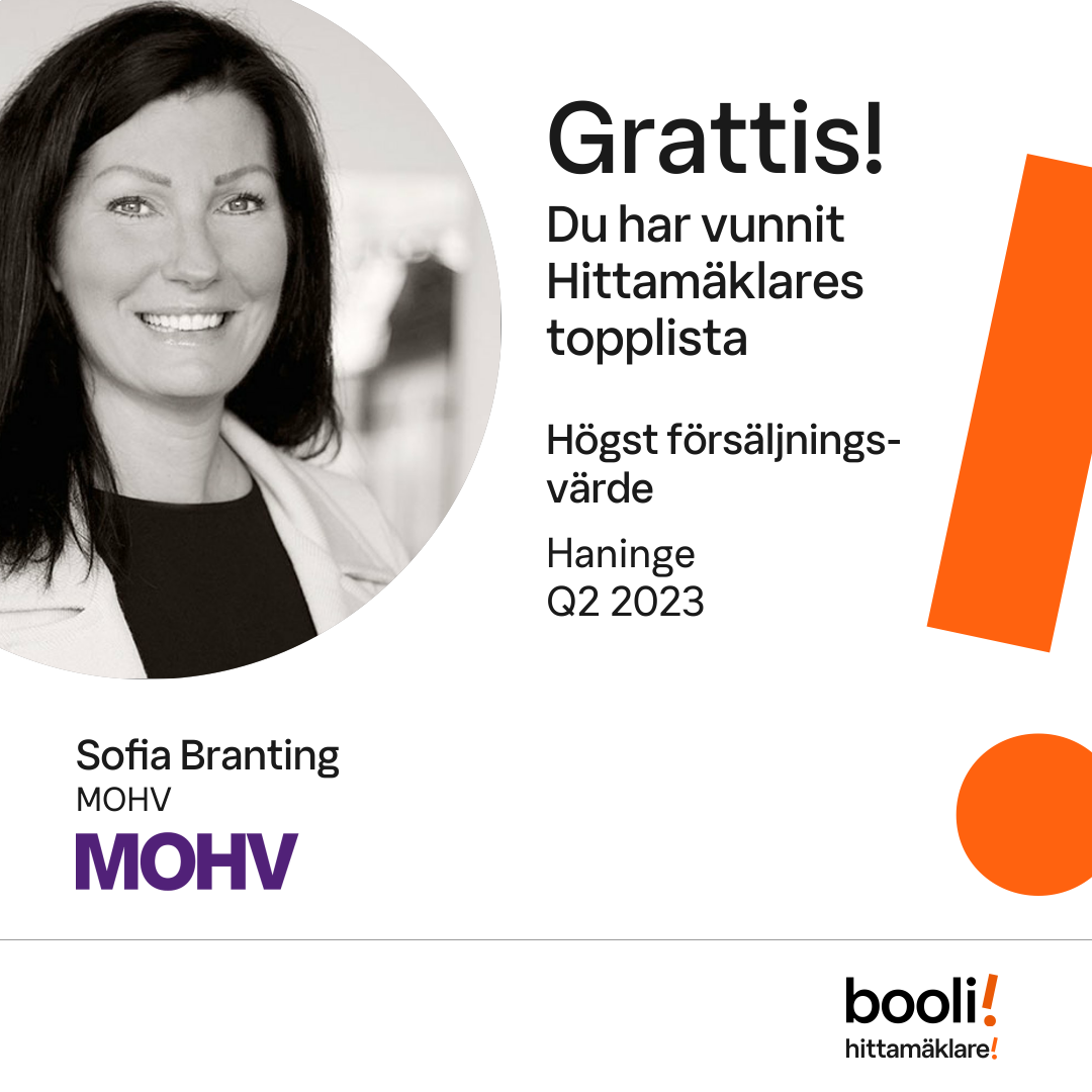 Statistik för publicerade bostäder, försäljningar och omdömen baseras på data från Booli och Hittamäklare. Statistiken för försäljningar avser inrapporterade och verifierade slutpriser från mäklare eller av Booli inhämtade och verifierade slutpriser. Statistiken för publicerade bostäder baseras på information som publicerats på Booli.se. Statistik för omdömen och rekommendationer baseras på omdömen från säljare som lämnats via Booli och Hittamäklare.