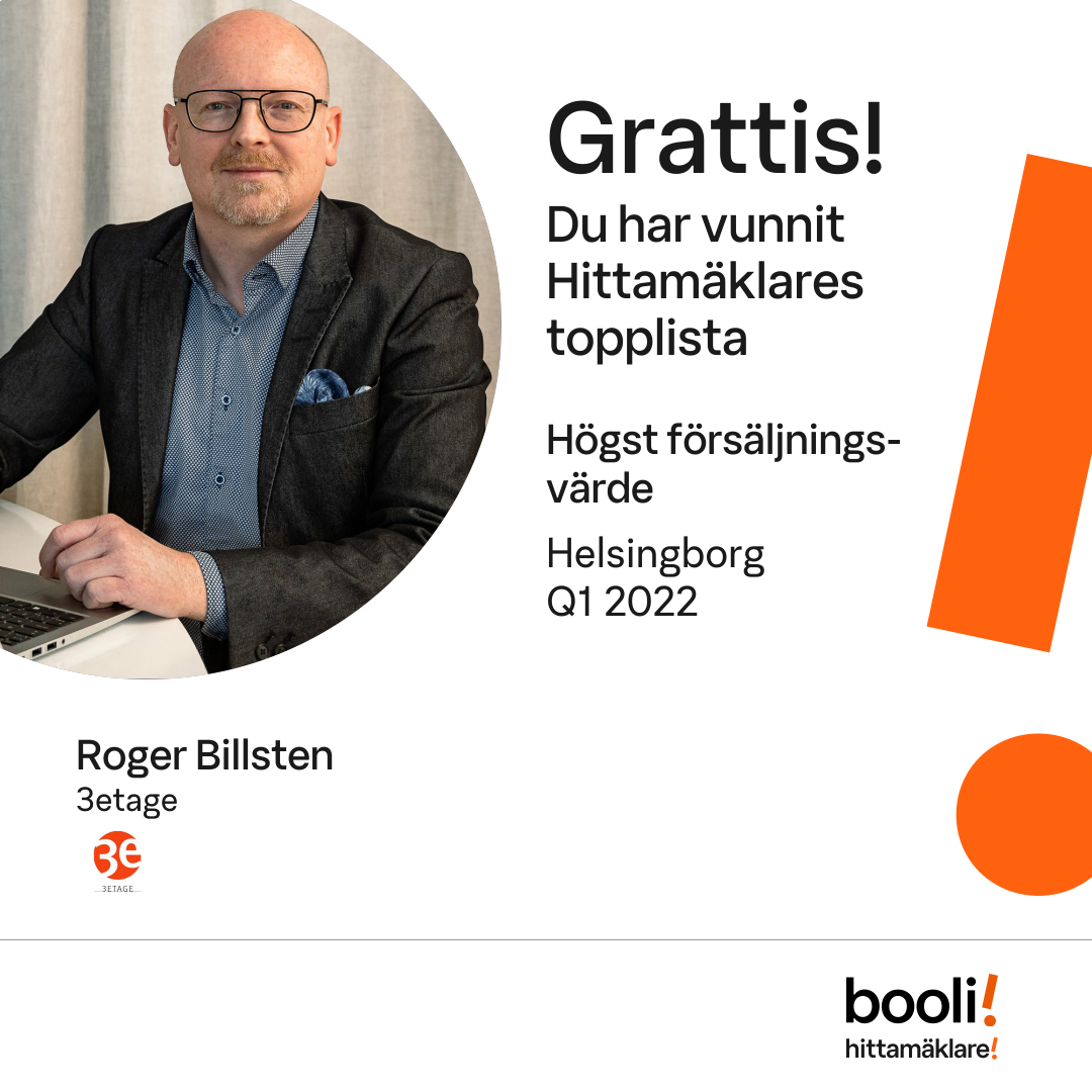 Statistik för publicerade bostäder, försäljningar och omdömen baseras på data från Booli och Hittamäklare. Statistiken för försäljningar avser inrapporterade och verifierade slutpriser från mäklare eller av Booli inhämtade och verifierade slutpriser. Statistiken för publicerade bostäder baseras på information som publicerats på Booli.se. Statistik för omdömen och rekommendationer baseras på omdömen från säljare som lämnats via Booli och Hittamäklare.