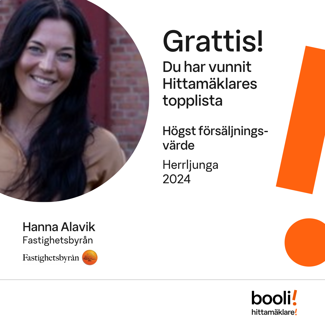 Statistik för publicerade bostäder, försäljningar och omdömen baseras på data från Booli och Hittamäklare. Statistiken för försäljningar avser inrapporterade och verifierade slutpriser från mäklare eller av Booli inhämtade och verifierade slutpriser. Statistiken för publicerade bostäder baseras på information som publicerats på Booli.se. Statistik för omdömen och rekommendationer baseras på omdömen från säljare som lämnats via Booli och Hittamäklare.