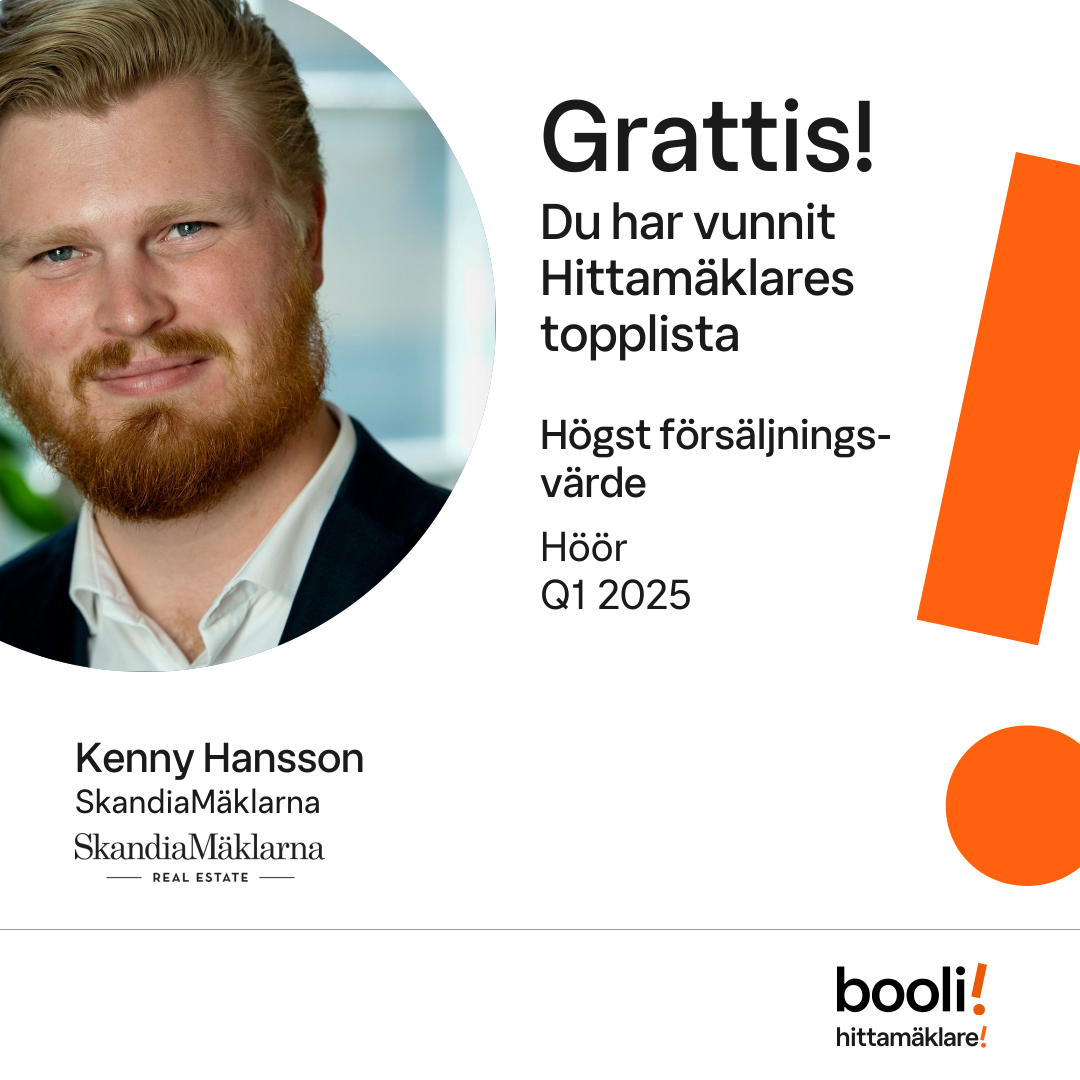 Statistik för publicerade bostäder, försäljningar och omdömen baseras på data från Booli och Hittamäklare. Statistiken för försäljningar avser inrapporterade och verifierade slutpriser från mäklare eller av Booli inhämtade och verifierade slutpriser. Statistiken för publicerade bostäder baseras på information som publicerats på Booli.se. Statistik för omdömen och rekommendationer baseras på omdömen från säljare som lämnats via Booli och Hittamäklare.