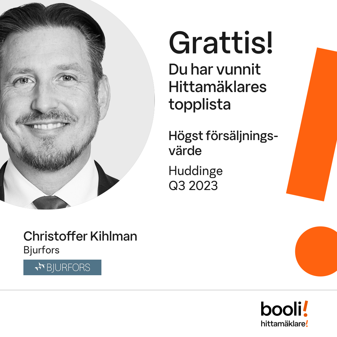 Statistik för publicerade bostäder, försäljningar och omdömen baseras på data från Booli och Hittamäklare. Statistiken för försäljningar avser inrapporterade och verifierade slutpriser från mäklare eller av Booli inhämtade och verifierade slutpriser. Statistiken för publicerade bostäder baseras på information som publicerats på Booli.se. Statistik för omdömen och rekommendationer baseras på omdömen från säljare som lämnats via Booli och Hittamäklare.