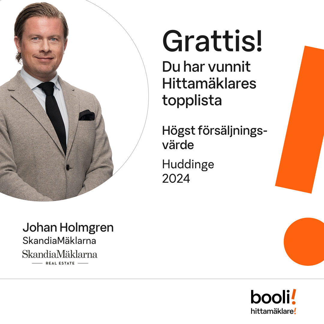 Statistik för publicerade bostäder, försäljningar och omdömen baseras på data från Booli och Hittamäklare. Statistiken för försäljningar avser inrapporterade och verifierade slutpriser från mäklare eller av Booli inhämtade och verifierade slutpriser. Statistiken för publicerade bostäder baseras på information som publicerats på Booli.se. Statistik för omdömen och rekommendationer baseras på omdömen från säljare som lämnats via Booli och Hittamäklare.