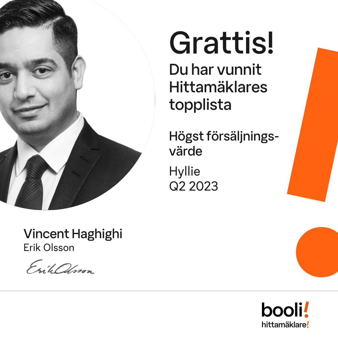 Statistik för publicerade bostäder, försäljningar och omdömen baseras på data från Booli och Hittamäklare. Statistiken för försäljningar avser inrapporterade och verifierade slutpriser från mäklare eller av Booli inhämtade och verifierade slutpriser. Statistiken för publicerade bostäder baseras på information som publicerats på Booli.se. Statistik för omdömen och rekommendationer baseras på omdömen från säljare som lämnats via Booli och Hittamäklare.