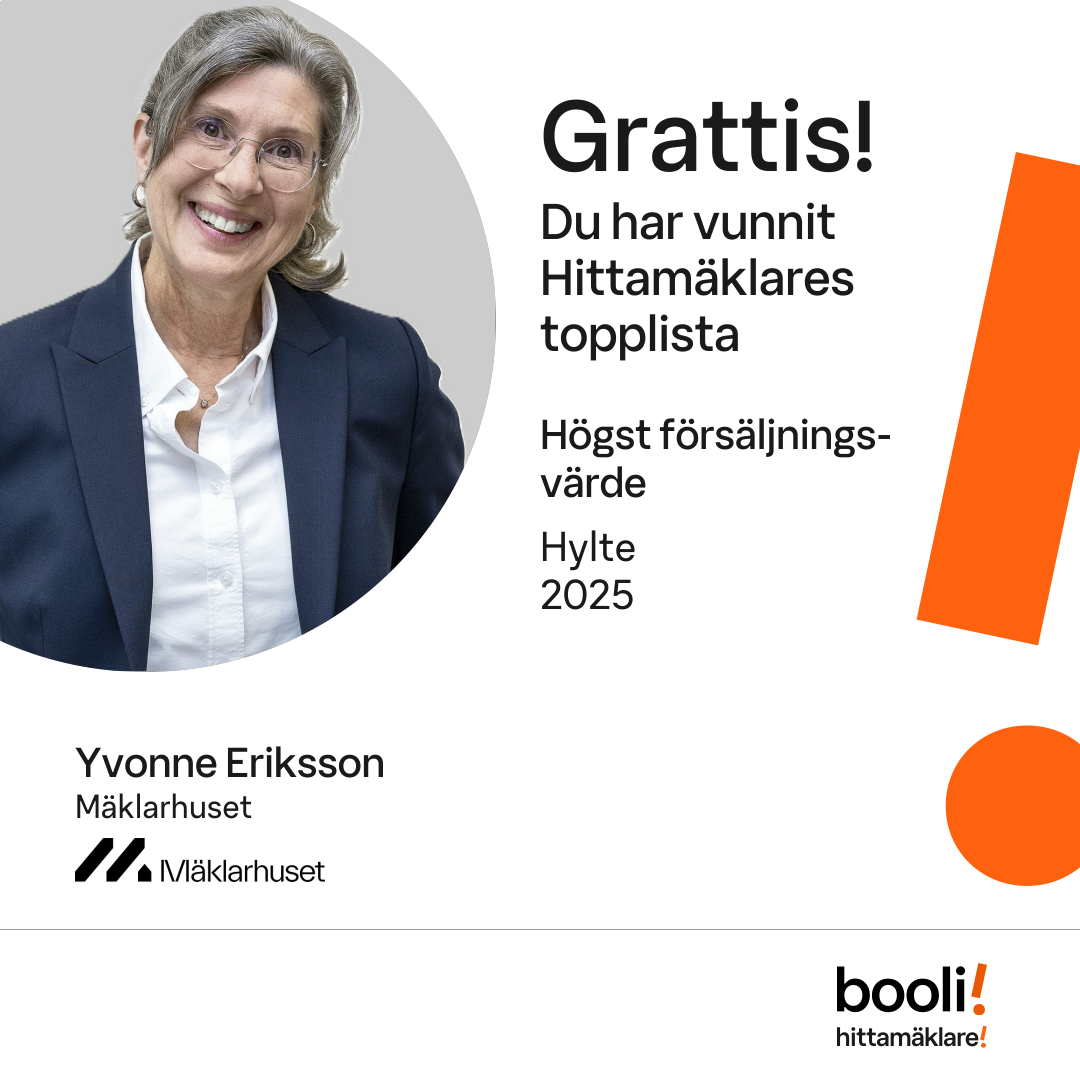 Statistik för publicerade bostäder, försäljningar och omdömen baseras på data från Booli och Hittamäklare. Statistiken för försäljningar avser inrapporterade och verifierade slutpriser från mäklare eller av Booli inhämtade och verifierade slutpriser. Statistiken för publicerade bostäder baseras på information som publicerats på Booli.se. Statistik för omdömen och rekommendationer baseras på omdömen från säljare som lämnats via Booli och Hittamäklare.