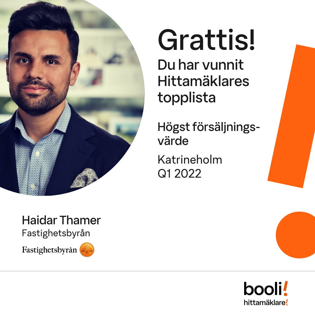 Statistik för publicerade bostäder, försäljningar och omdömen baseras på data från Booli och Hittamäklare. Statistiken för försäljningar avser inrapporterade och verifierade slutpriser från mäklare eller av Booli inhämtade och verifierade slutpriser. Statistiken för publicerade bostäder baseras på information som publicerats på Booli.se. Statistik för omdömen och rekommendationer baseras på omdömen från säljare som lämnats via Booli och Hittamäklare.
