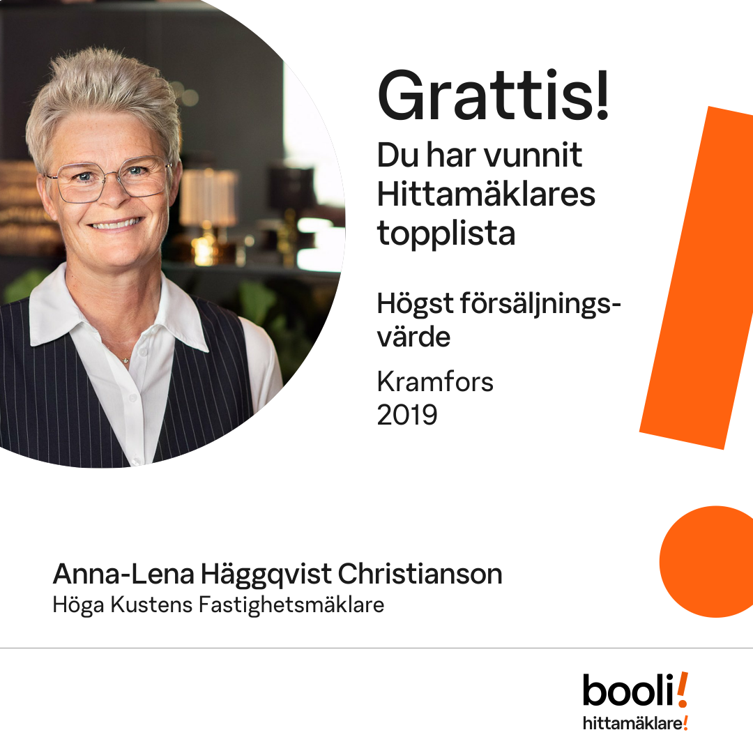 Statistik för publicerade bostäder, försäljningar och omdömen baseras på data från Booli och Hittamäklare. Statistiken för försäljningar avser inrapporterade och verifierade slutpriser från mäklare eller av Booli inhämtade och verifierade slutpriser. Statistiken för publicerade bostäder baseras på information som publicerats på Booli.se. Statistik för omdömen och rekommendationer baseras på omdömen från säljare som lämnats via Booli och Hittamäklare.