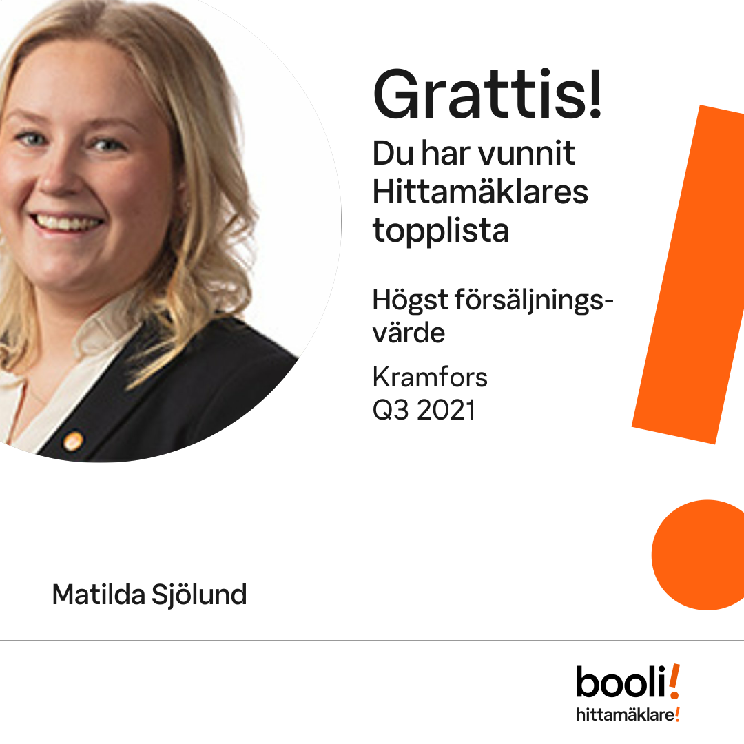 Statistik för publicerade bostäder, försäljningar och omdömen baseras på data från Booli och Hittamäklare. Statistiken för försäljningar avser inrapporterade och verifierade slutpriser från mäklare eller av Booli inhämtade och verifierade slutpriser. Statistiken för publicerade bostäder baseras på information som publicerats på Booli.se. Statistik för omdömen och rekommendationer baseras på omdömen från säljare som lämnats via Booli och Hittamäklare.