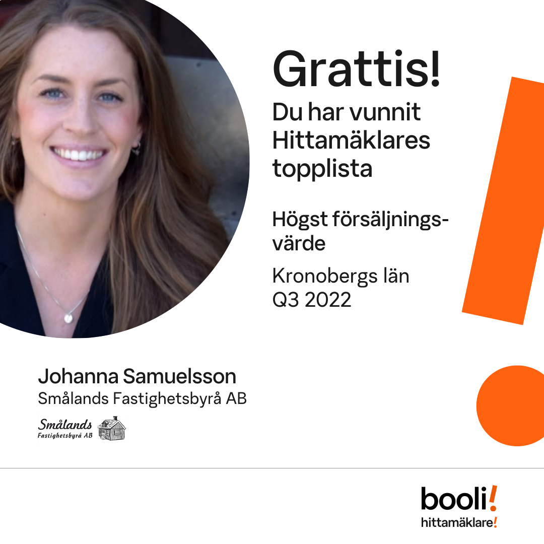 Statistik för publicerade bostäder, försäljningar och omdömen baseras på data från Booli och Hittamäklare. Statistiken för försäljningar avser inrapporterade och verifierade slutpriser från mäklare eller av Booli inhämtade och verifierade slutpriser. Statistiken för publicerade bostäder baseras på information som publicerats på Booli.se. Statistik för omdömen och rekommendationer baseras på omdömen från säljare som lämnats via Booli och Hittamäklare.
