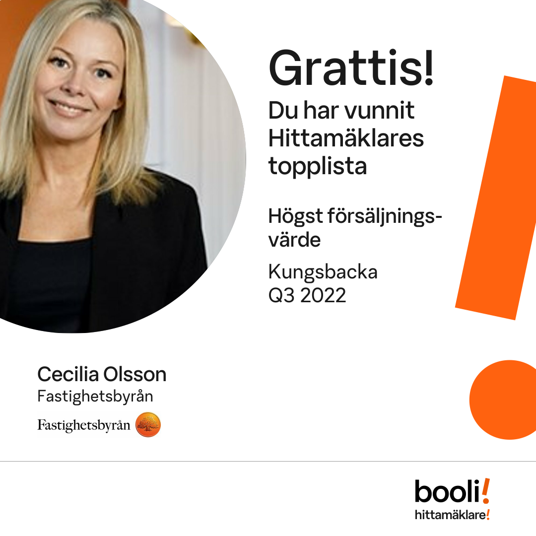 Mäklarna med högst försäljningsvärde i Kungsbacka tredje kvartalet 2022 enligt vår statistik. Publicerad 2022-10-11.