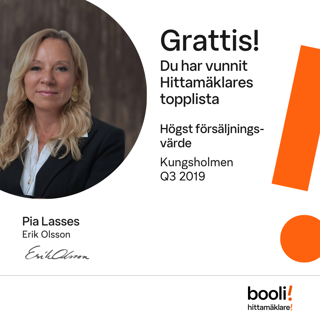 Statistik för publicerade bostäder, försäljningar och omdömen baseras på data från Booli och Hittamäklare. Statistiken för försäljningar avser inrapporterade och verifierade slutpriser från mäklare eller av Booli inhämtade och verifierade slutpriser. Statistiken för publicerade bostäder baseras på information som publicerats på Booli.se. Statistik för omdömen och rekommendationer baseras på omdömen från säljare som lämnats via Booli och Hittamäklare.