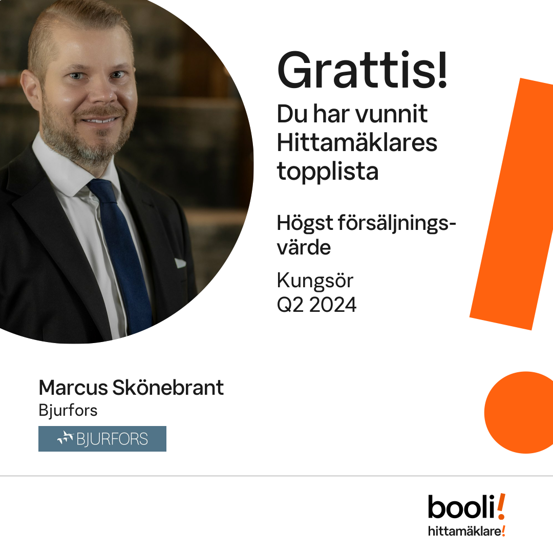 Statistik för publicerade bostäder, försäljningar och omdömen baseras på data från Booli och Hittamäklare. Statistiken för försäljningar avser inrapporterade och verifierade slutpriser från mäklare eller av Booli inhämtade och verifierade slutpriser. Statistiken för publicerade bostäder baseras på information som publicerats på Booli.se. Statistik för omdömen och rekommendationer baseras på omdömen från säljare som lämnats via Booli och Hittamäklare.