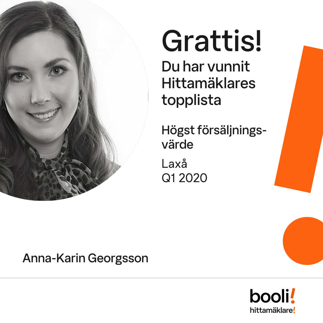 Statistik för publicerade bostäder, försäljningar och omdömen baseras på data från Booli och Hittamäklare. Statistiken för försäljningar avser inrapporterade och verifierade slutpriser från mäklare eller av Booli inhämtade och verifierade slutpriser. Statistiken för publicerade bostäder baseras på information som publicerats på Booli.se. Statistik för omdömen och rekommendationer baseras på omdömen från säljare som lämnats via Booli och Hittamäklare.