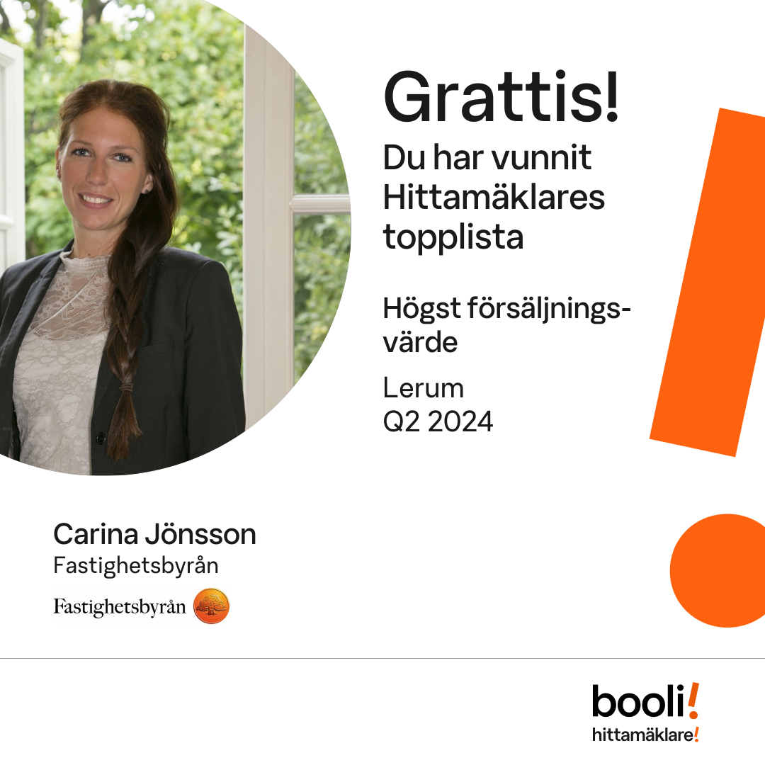 Statistik för publicerade bostäder, försäljningar och omdömen baseras på data från Booli och Hittamäklare. Statistiken för försäljningar avser inrapporterade och verifierade slutpriser från mäklare eller av Booli inhämtade och verifierade slutpriser. Statistiken för publicerade bostäder baseras på information som publicerats på Booli.se. Statistik för omdömen och rekommendationer baseras på omdömen från säljare som lämnats via Booli och Hittamäklare.