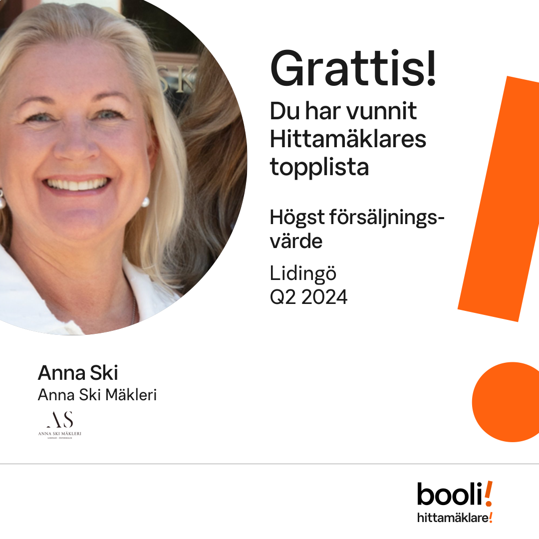 Statistik för publicerade bostäder, försäljningar och omdömen baseras på data från Booli och Hittamäklare. Statistiken för försäljningar avser inrapporterade och verifierade slutpriser från mäklare eller av Booli inhämtade och verifierade slutpriser. Statistiken för publicerade bostäder baseras på information som publicerats på Booli.se. Statistik för omdömen och rekommendationer baseras på omdömen från säljare som lämnats via Booli och Hittamäklare.
