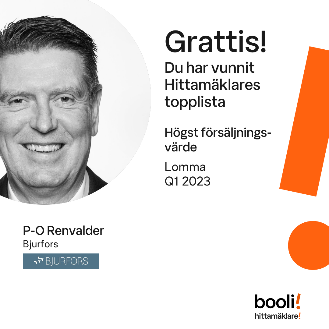 Statistik för publicerade bostäder, försäljningar och omdömen baseras på data från Booli och Hittamäklare. Statistiken för försäljningar avser inrapporterade och verifierade slutpriser från mäklare eller av Booli inhämtade och verifierade slutpriser. Statistiken för publicerade bostäder baseras på information som publicerats på Booli.se. Statistik för omdömen och rekommendationer baseras på omdömen från säljare som lämnats via Booli och Hittamäklare.