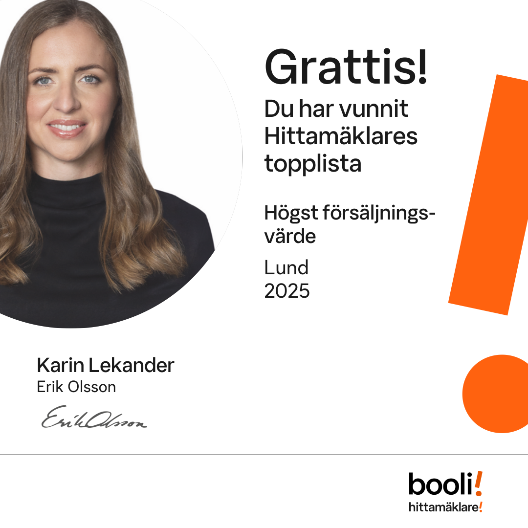 Statistik för publicerade bostäder, försäljningar och omdömen baseras på data från Booli och Hittamäklare. Statistiken för försäljningar avser inrapporterade och verifierade slutpriser från mäklare eller av Booli inhämtade och verifierade slutpriser. Statistiken för publicerade bostäder baseras på information som publicerats på Booli.se. Statistik för omdömen och rekommendationer baseras på omdömen från säljare som lämnats via Booli och Hittamäklare.