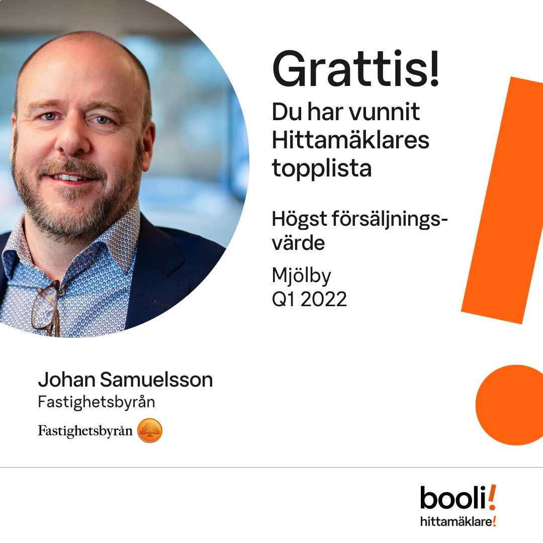 Statistik för publicerade bostäder, försäljningar och omdömen baseras på data från Booli och Hittamäklare. Statistiken för försäljningar avser inrapporterade och verifierade slutpriser från mäklare eller av Booli inhämtade och verifierade slutpriser. Statistiken för publicerade bostäder baseras på information som publicerats på Booli.se. Statistik för omdömen och rekommendationer baseras på omdömen från säljare som lämnats via Booli och Hittamäklare.