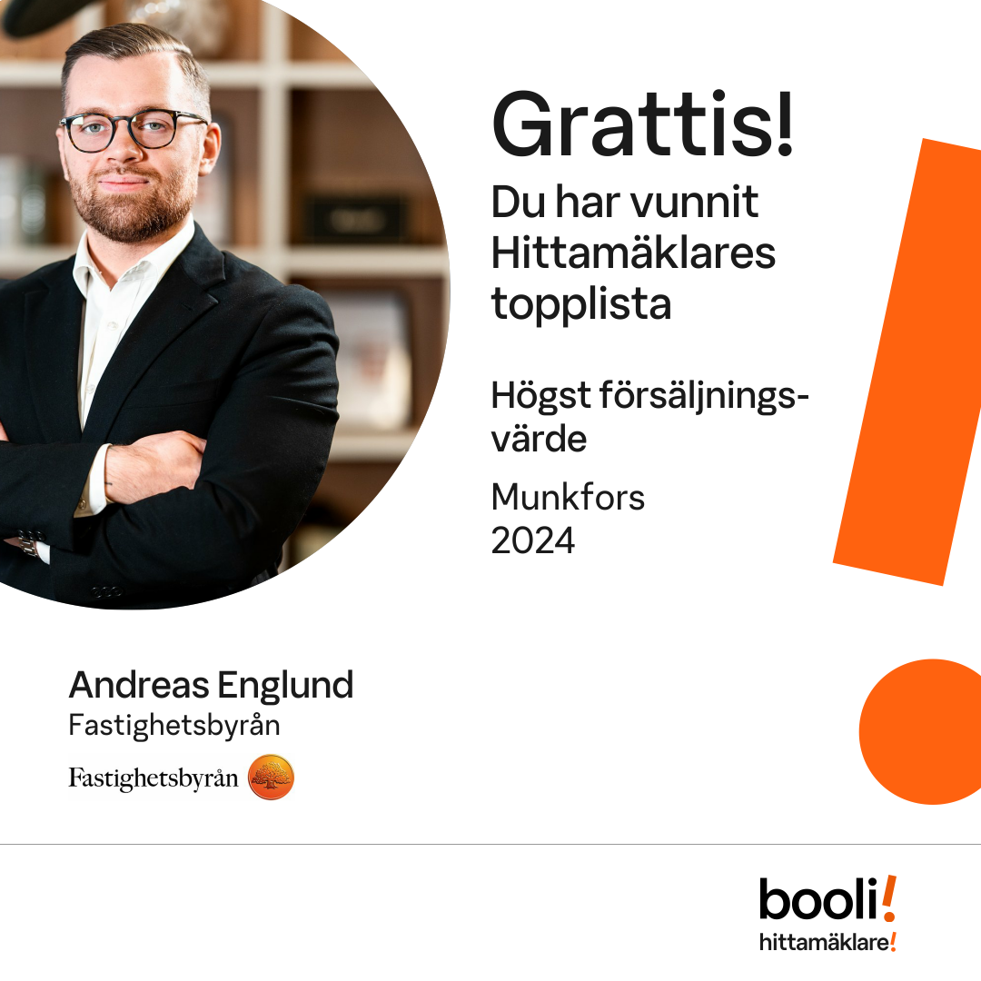 Statistik för publicerade bostäder, försäljningar och omdömen baseras på data från Booli och Hittamäklare. Statistiken för försäljningar avser inrapporterade och verifierade slutpriser från mäklare eller av Booli inhämtade och verifierade slutpriser. Statistiken för publicerade bostäder baseras på information som publicerats på Booli.se. Statistik för omdömen och rekommendationer baseras på omdömen från säljare som lämnats via Booli och Hittamäklare.