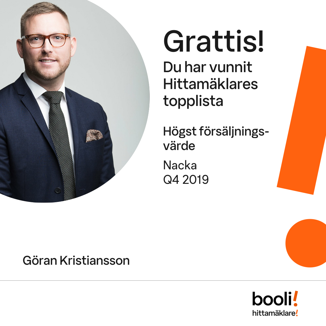 Statistik för publicerade bostäder, försäljningar och omdömen baseras på data från Booli och Hittamäklare. Statistiken för försäljningar avser inrapporterade och verifierade slutpriser från mäklare eller av Booli inhämtade och verifierade slutpriser. Statistiken för publicerade bostäder baseras på information som publicerats på Booli.se. Statistik för omdömen och rekommendationer baseras på omdömen från säljare som lämnats via Booli och Hittamäklare.