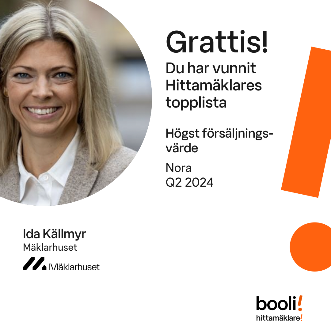 Statistik för publicerade bostäder, försäljningar och omdömen baseras på data från Booli och Hittamäklare. Statistiken för försäljningar avser inrapporterade och verifierade slutpriser från mäklare eller av Booli inhämtade och verifierade slutpriser. Statistiken för publicerade bostäder baseras på information som publicerats på Booli.se. Statistik för omdömen och rekommendationer baseras på omdömen från säljare som lämnats via Booli och Hittamäklare.