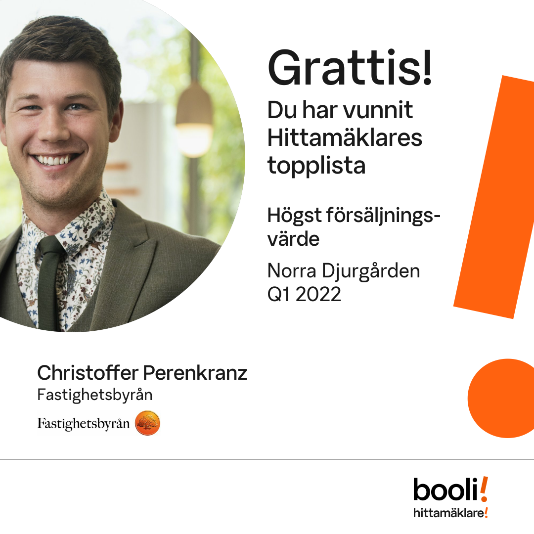 Statistik för publicerade bostäder, försäljningar och omdömen baseras på data från Booli och Hittamäklare. Statistiken för försäljningar avser inrapporterade och verifierade slutpriser från mäklare eller av Booli inhämtade och verifierade slutpriser. Statistiken för publicerade bostäder baseras på information som publicerats på Booli.se. Statistik för omdömen och rekommendationer baseras på omdömen från säljare som lämnats via Booli och Hittamäklare.