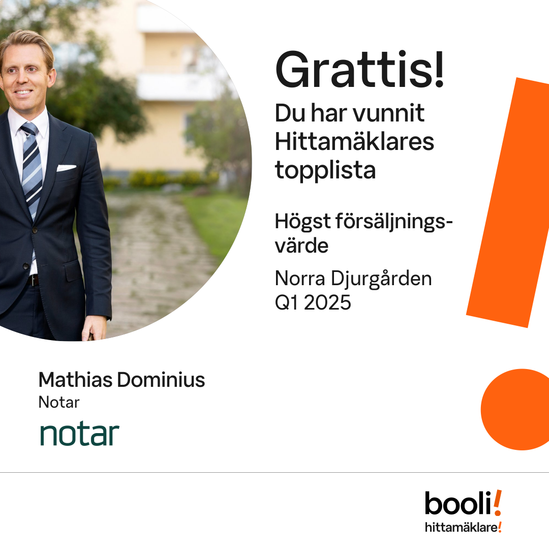 Statistik för publicerade bostäder, försäljningar och omdömen baseras på data från Booli och Hittamäklare. Statistiken för försäljningar avser inrapporterade och verifierade slutpriser från mäklare eller av Booli inhämtade och verifierade slutpriser. Statistiken för publicerade bostäder baseras på information som publicerats på Booli.se. Statistik för omdömen och rekommendationer baseras på omdömen från säljare som lämnats via Booli och Hittamäklare.