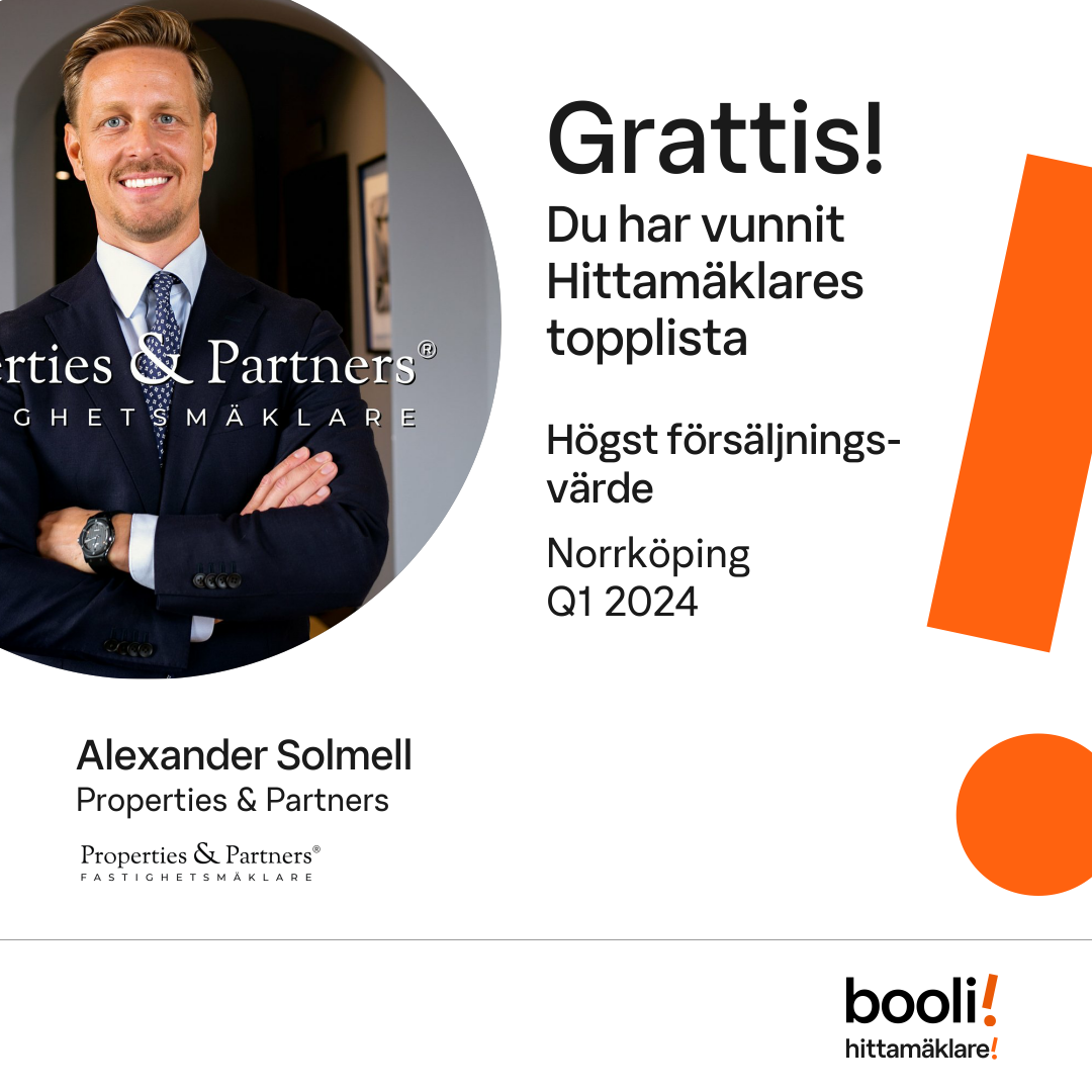 Statistik för publicerade bostäder, försäljningar och omdömen baseras på data från Booli och Hittamäklare. Statistiken för försäljningar avser inrapporterade och verifierade slutpriser från mäklare eller av Booli inhämtade och verifierade slutpriser. Statistiken för publicerade bostäder baseras på information som publicerats på Booli.se. Statistik för omdömen och rekommendationer baseras på omdömen från säljare som lämnats via Booli och Hittamäklare.