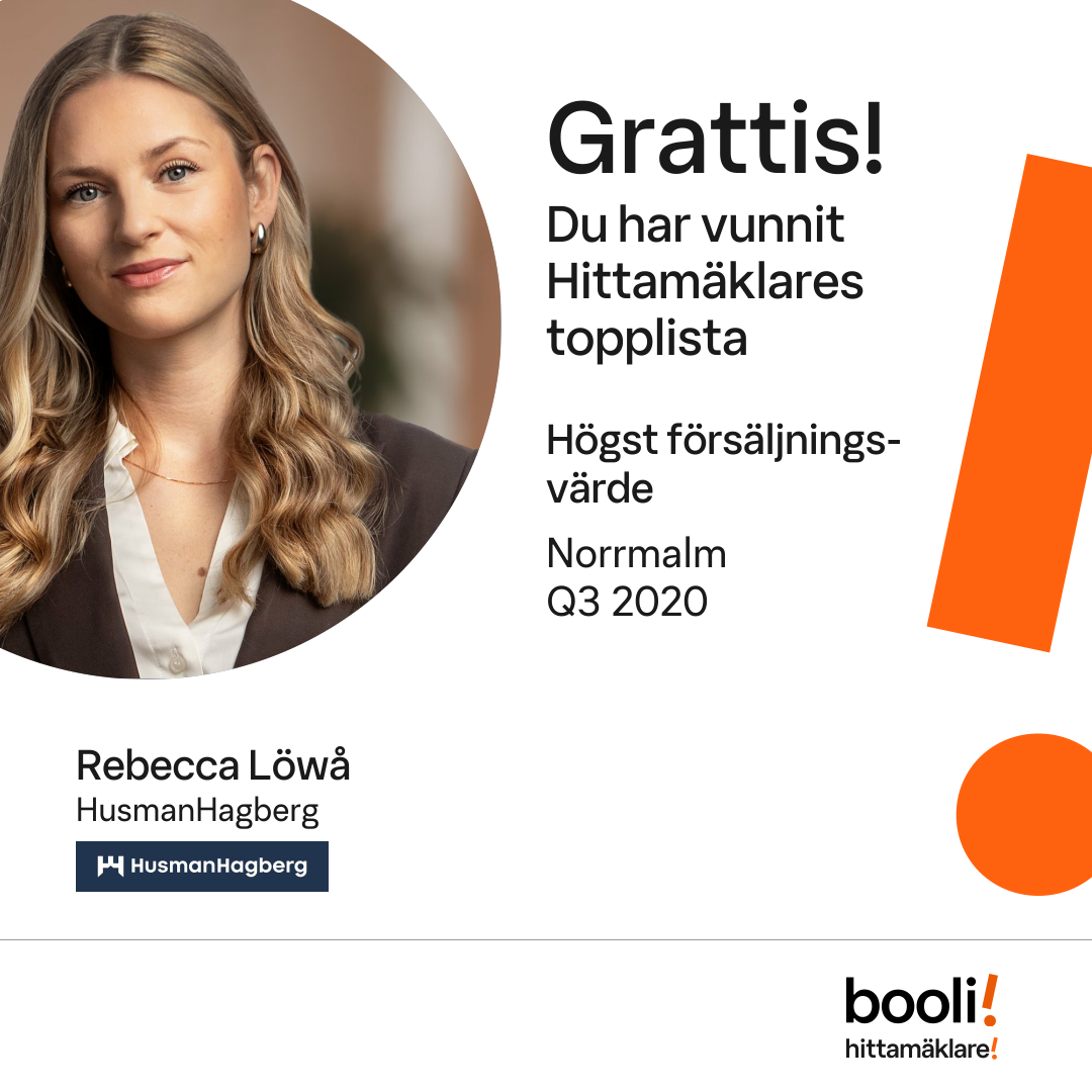 Statistik för publicerade bostäder, försäljningar och omdömen baseras på data från Booli och Hittamäklare. Statistiken för försäljningar avser inrapporterade och verifierade slutpriser från mäklare eller av Booli inhämtade och verifierade slutpriser. Statistiken för publicerade bostäder baseras på information som publicerats på Booli.se. Statistik för omdömen och rekommendationer baseras på omdömen från säljare som lämnats via Booli och Hittamäklare.