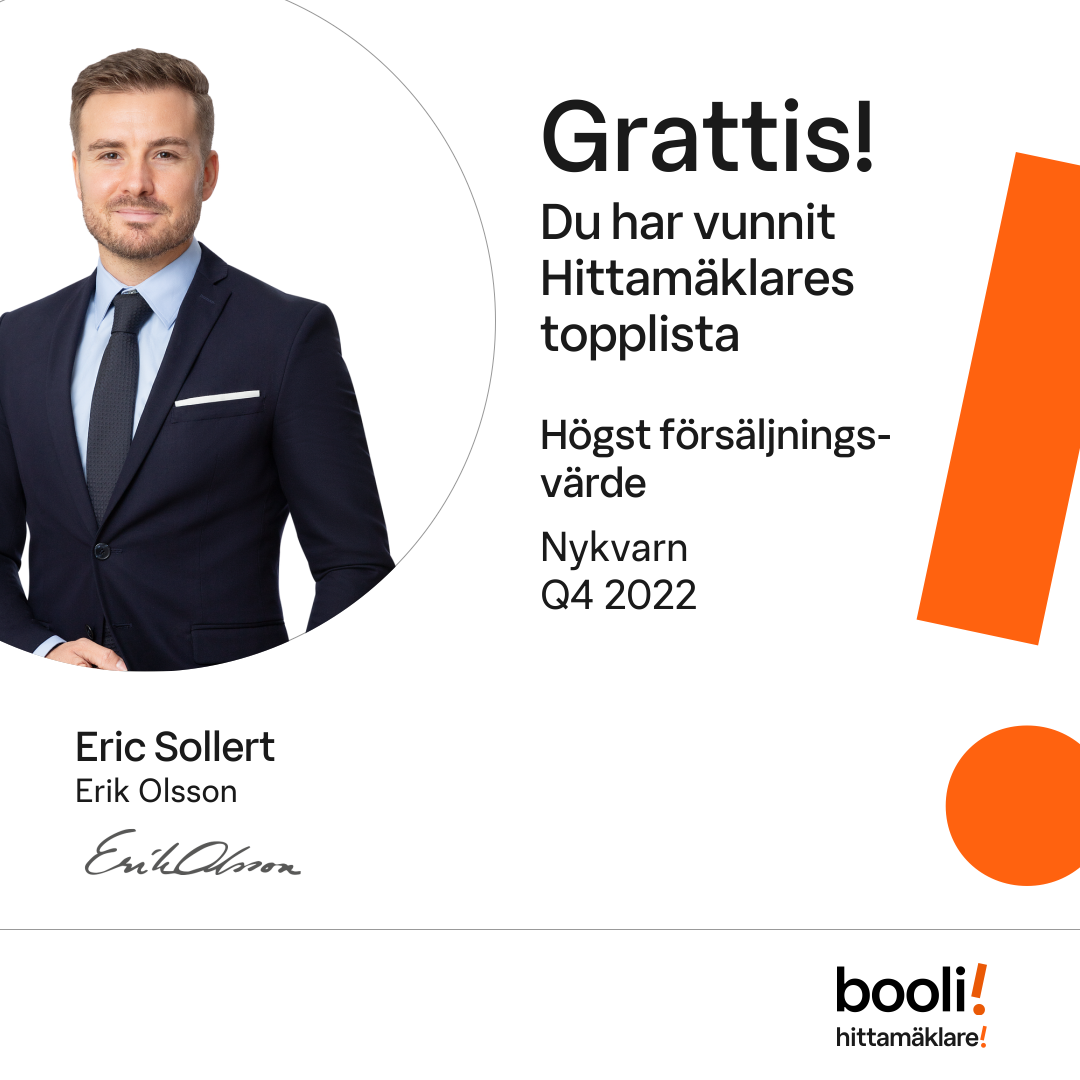 Statistik för publicerade bostäder, försäljningar och omdömen baseras på data från Booli och Hittamäklare. Statistiken för försäljningar avser inrapporterade och verifierade slutpriser från mäklare eller av Booli inhämtade och verifierade slutpriser. Statistiken för publicerade bostäder baseras på information som publicerats på Booli.se. Statistik för omdömen och rekommendationer baseras på omdömen från säljare som lämnats via Booli och Hittamäklare.