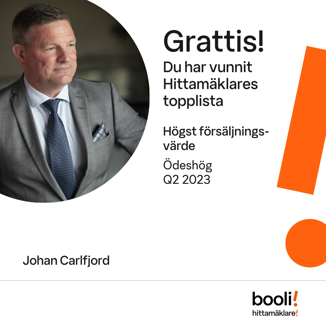 Statistik för publicerade bostäder, försäljningar och omdömen baseras på data från Booli och Hittamäklare. Statistiken för försäljningar avser inrapporterade och verifierade slutpriser från mäklare eller av Booli inhämtade och verifierade slutpriser. Statistiken för publicerade bostäder baseras på information som publicerats på Booli.se. Statistik för omdömen och rekommendationer baseras på omdömen från säljare som lämnats via Booli och Hittamäklare.