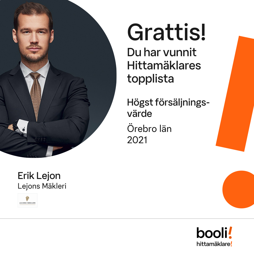 Statistik för publicerade bostäder, försäljningar och omdömen baseras på data från Booli och Hittamäklare. Statistiken för försäljningar avser inrapporterade och verifierade slutpriser från mäklare eller av Booli inhämtade och verifierade slutpriser. Statistiken för publicerade bostäder baseras på information som publicerats på Booli.se. Statistik för omdömen och rekommendationer baseras på omdömen från säljare som lämnats via Booli och Hittamäklare.
