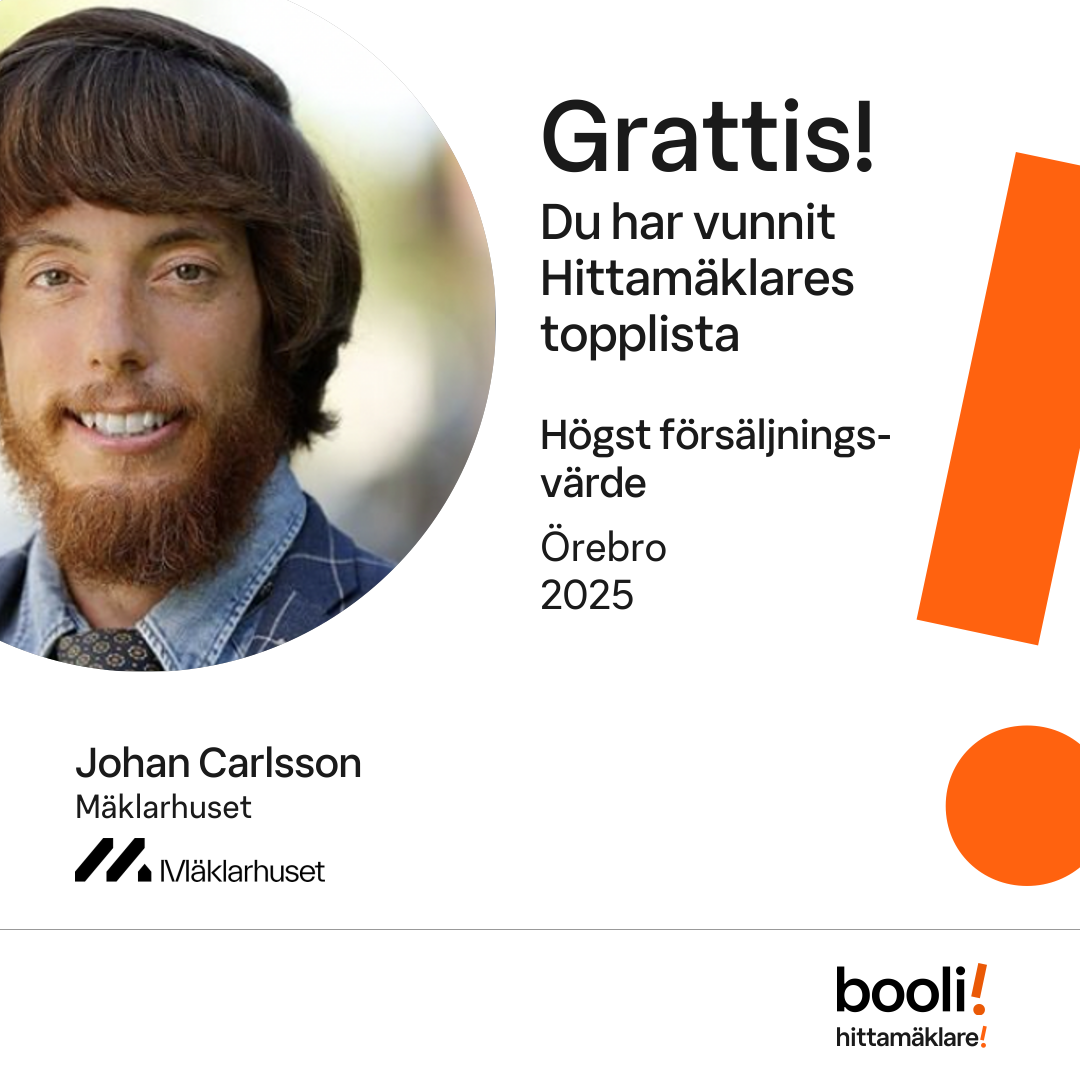 Statistik för publicerade bostäder, försäljningar och omdömen baseras på data från Booli och Hittamäklare. Statistiken för försäljningar avser inrapporterade och verifierade slutpriser från mäklare eller av Booli inhämtade och verifierade slutpriser. Statistiken för publicerade bostäder baseras på information som publicerats på Booli.se. Statistik för omdömen och rekommendationer baseras på omdömen från säljare som lämnats via Booli och Hittamäklare.