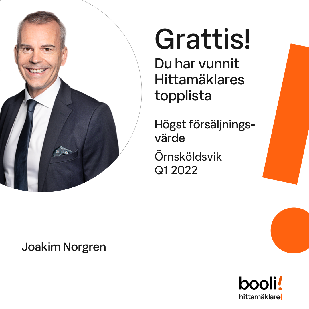 Statistik för publicerade bostäder, försäljningar och omdömen baseras på data från Booli och Hittamäklare. Statistiken för försäljningar avser inrapporterade och verifierade slutpriser från mäklare eller av Booli inhämtade och verifierade slutpriser. Statistiken för publicerade bostäder baseras på information som publicerats på Booli.se. Statistik för omdömen och rekommendationer baseras på omdömen från säljare som lämnats via Booli och Hittamäklare.