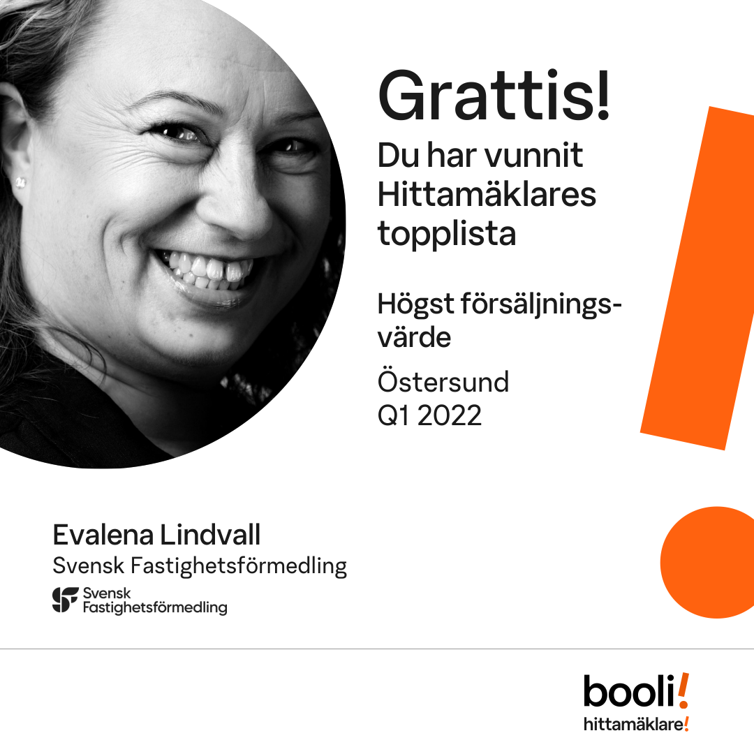Statistik för publicerade bostäder, försäljningar och omdömen baseras på data från Booli och Hittamäklare. Statistiken för försäljningar avser inrapporterade och verifierade slutpriser från mäklare eller av Booli inhämtade och verifierade slutpriser. Statistiken för publicerade bostäder baseras på information som publicerats på Booli.se. Statistik för omdömen och rekommendationer baseras på omdömen från säljare som lämnats via Booli och Hittamäklare.