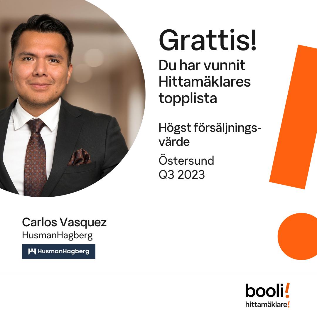 Statistik för publicerade bostäder, försäljningar och omdömen baseras på data från Booli och Hittamäklare. Statistiken för försäljningar avser inrapporterade och verifierade slutpriser från mäklare eller av Booli inhämtade och verifierade slutpriser. Statistiken för publicerade bostäder baseras på information som publicerats på Booli.se. Statistik för omdömen och rekommendationer baseras på omdömen från säljare som lämnats via Booli och Hittamäklare.