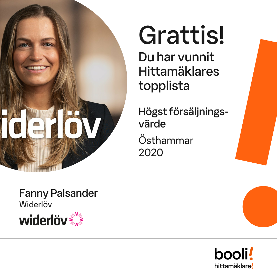 Statistik för publicerade bostäder, försäljningar och omdömen baseras på data från Booli och Hittamäklare. Statistiken för försäljningar avser inrapporterade och verifierade slutpriser från mäklare eller av Booli inhämtade och verifierade slutpriser. Statistiken för publicerade bostäder baseras på information som publicerats på Booli.se. Statistik för omdömen och rekommendationer baseras på omdömen från säljare som lämnats via Booli och Hittamäklare.
