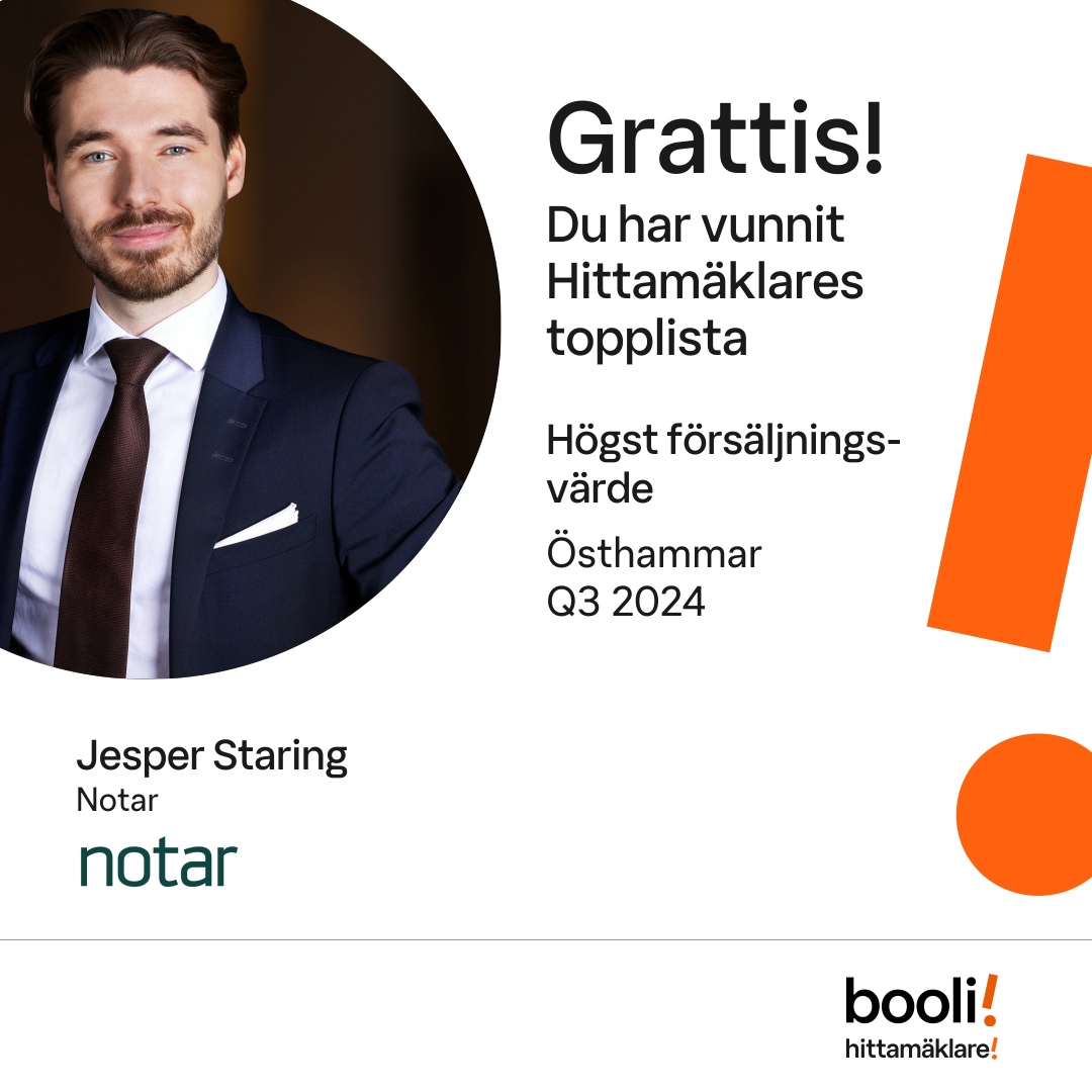 Statistik för publicerade bostäder, försäljningar och omdömen baseras på data från Booli och Hittamäklare. Statistiken för försäljningar avser inrapporterade och verifierade slutpriser från mäklare eller av Booli inhämtade och verifierade slutpriser. Statistiken för publicerade bostäder baseras på information som publicerats på Booli.se. Statistik för omdömen och rekommendationer baseras på omdömen från säljare som lämnats via Booli och Hittamäklare.