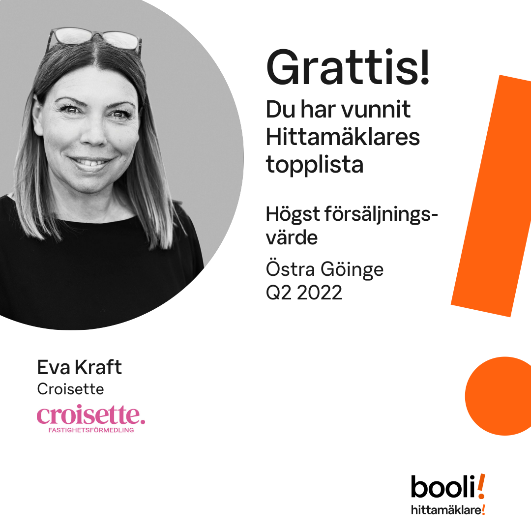 Statistik för publicerade bostäder, försäljningar och omdömen baseras på data från Booli och Hittamäklare. Statistiken för försäljningar avser inrapporterade och verifierade slutpriser från mäklare eller av Booli inhämtade och verifierade slutpriser. Statistiken för publicerade bostäder baseras på information som publicerats på Booli.se. Statistik för omdömen och rekommendationer baseras på omdömen från säljare som lämnats via Booli och Hittamäklare.