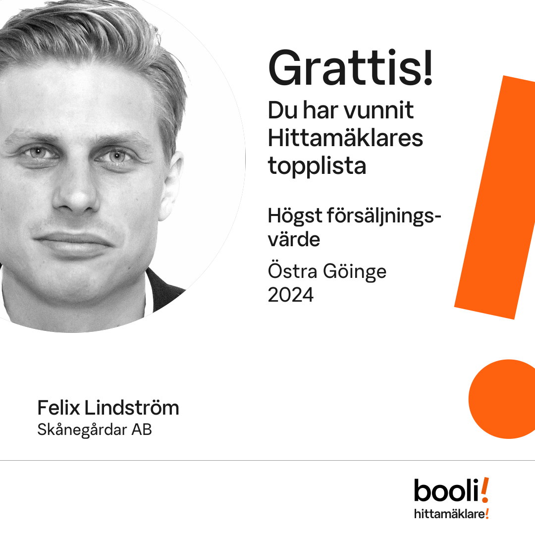 Statistik för publicerade bostäder, försäljningar och omdömen baseras på data från Booli och Hittamäklare. Statistiken för försäljningar avser inrapporterade och verifierade slutpriser från mäklare eller av Booli inhämtade och verifierade slutpriser. Statistiken för publicerade bostäder baseras på information som publicerats på Booli.se. Statistik för omdömen och rekommendationer baseras på omdömen från säljare som lämnats via Booli och Hittamäklare.