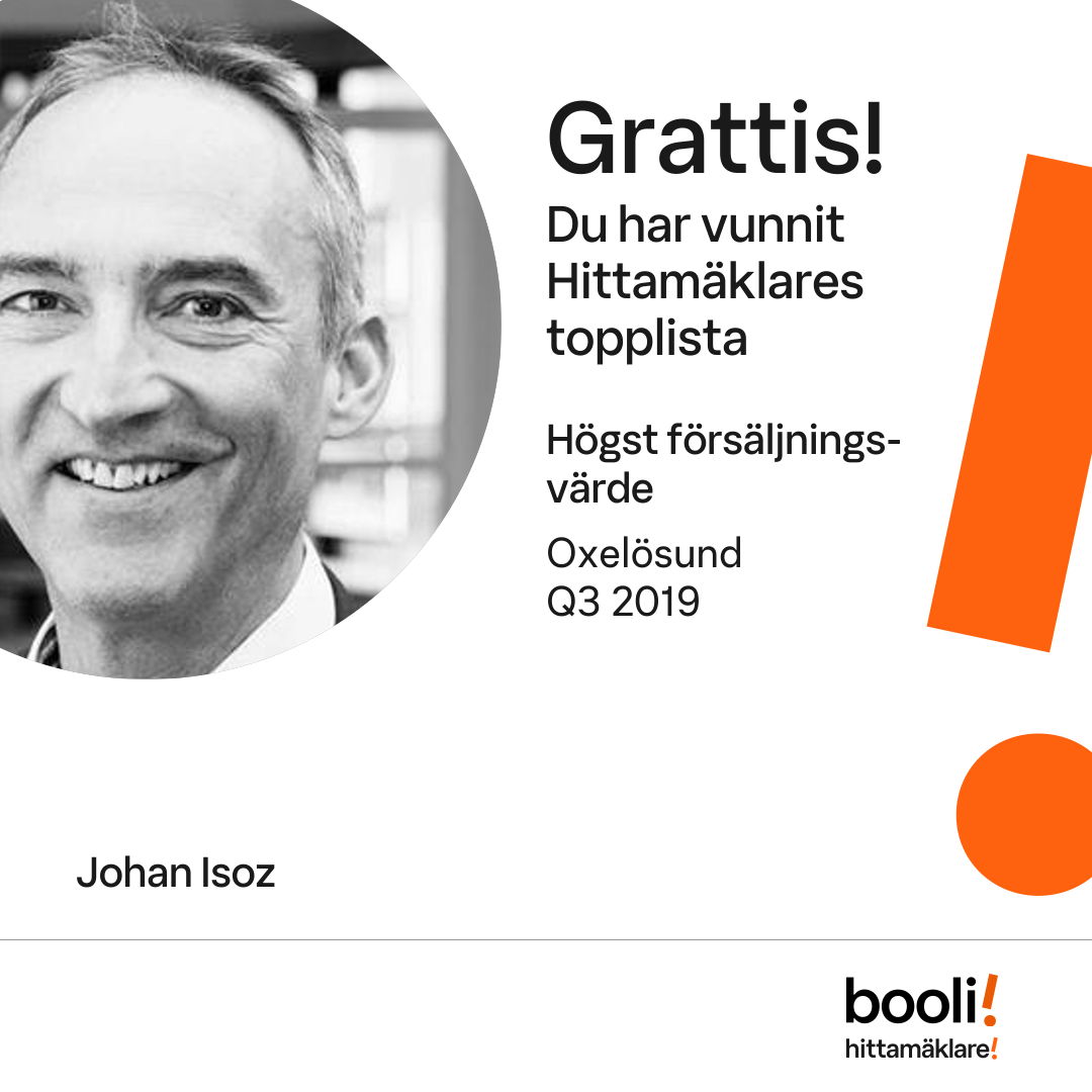 Statistik för publicerade bostäder, försäljningar och omdömen baseras på data från Booli och Hittamäklare. Statistiken för försäljningar avser inrapporterade och verifierade slutpriser från mäklare eller av Booli inhämtade och verifierade slutpriser. Statistiken för publicerade bostäder baseras på information som publicerats på Booli.se. Statistik för omdömen och rekommendationer baseras på omdömen från säljare som lämnats via Booli och Hittamäklare.