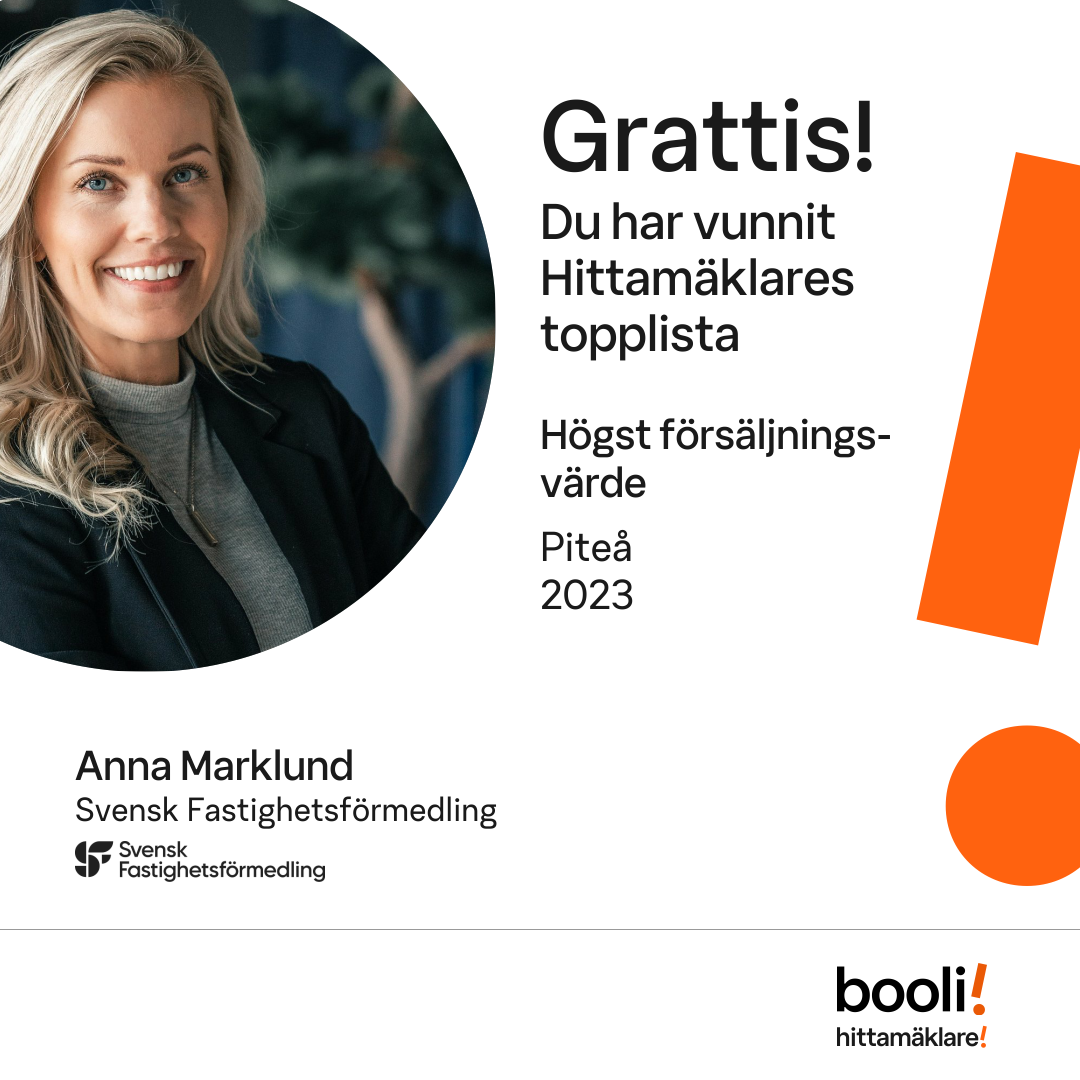 Statistik för publicerade bostäder, försäljningar och omdömen baseras på data från Booli och Hittamäklare. Statistiken för försäljningar avser inrapporterade och verifierade slutpriser från mäklare eller av Booli inhämtade och verifierade slutpriser. Statistiken för publicerade bostäder baseras på information som publicerats på Booli.se. Statistik för omdömen och rekommendationer baseras på omdömen från säljare som lämnats via Booli och Hittamäklare.