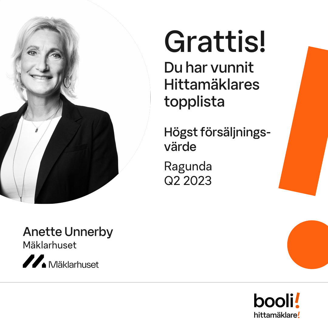 Statistik för publicerade bostäder, försäljningar och omdömen baseras på data från Booli. Statistiken för försäljningar avser inrapporterade och verifierade slutpriser från mäklare eller av Booli inhämtade och verifierade slutpriser. Statistiken för publicerade bostäder baseras på information som publicerats på Booli.se. Statistik för omdömen och rekommendationer baseras på omdömen från säljare som lämnats via Booli.