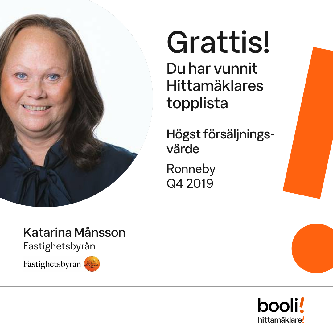 Mäklarna med högst försäljningsvärde i Ronneby fjärde kvartalet 2019 enligt vår statistik. Publicerad 2020-01-07.