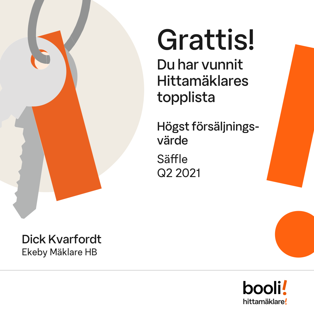 Statistik för publicerade bostäder, försäljningar och omdömen baseras på data från Booli och Hittamäklare. Statistiken för försäljningar avser inrapporterade och verifierade slutpriser från mäklare eller av Booli inhämtade och verifierade slutpriser. Statistiken för publicerade bostäder baseras på information som publicerats på Booli.se. Statistik för omdömen och rekommendationer baseras på omdömen från säljare som lämnats via Booli och Hittamäklare.